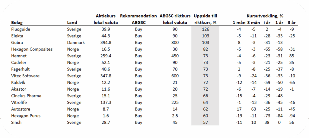 Störst upp- och nedsida i ABGSC:s bolagsuniversum