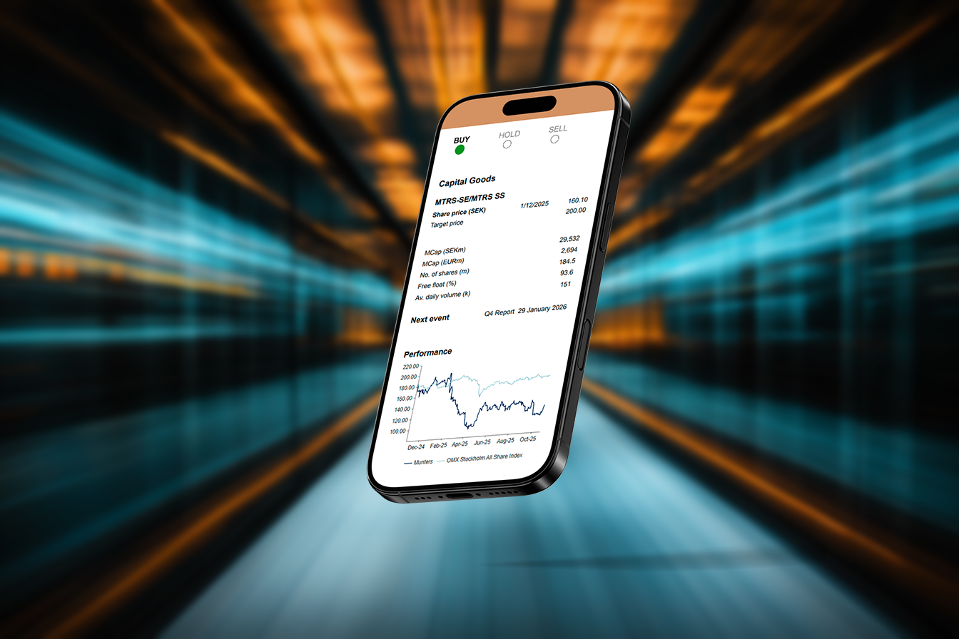 Efter Q3 har Munters dessutom säkrat sin hittills största enskilda order – 2 miljarder kronor från en hyperscaler den 12 november – följt av ytterligare en DCT-order på 775 miljoner kronor den 2 december. Detta bekräftar det förbättrade ordermomentum som syntes i rapporten och bidrog till att lyfta aktien 24 procent på rapportdagen. De nya affärerna bör driva upp konsensus för både Q4 och 2026. Efter orderboomen i Q4 väntas samtliga tre affärsområden visa vinsttillväxt redan i Q1 2026.