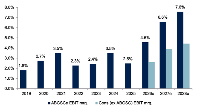 ABGSC är dock fortsatt positiva till sektorn. E-handeln fortsätter att ta marknadsandelar från fysisk handel, och konsensusprognoser pekar på betydligt snabbare vinsttillväxt för e-handelsbolag än för traditionella detaljhandelsbolag de kommande åren. Samtidigt handlas sektorn till en värderingsrabatt mot fysisk handel, trots högre tillväxt.