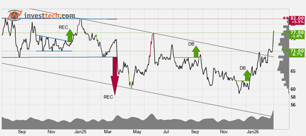 De av Investtech.com utarbetade automatiska tekniska analyserna publicerades första gången 2026-03-03. Underlagen för investeringsrekommendationerna hittar du här.