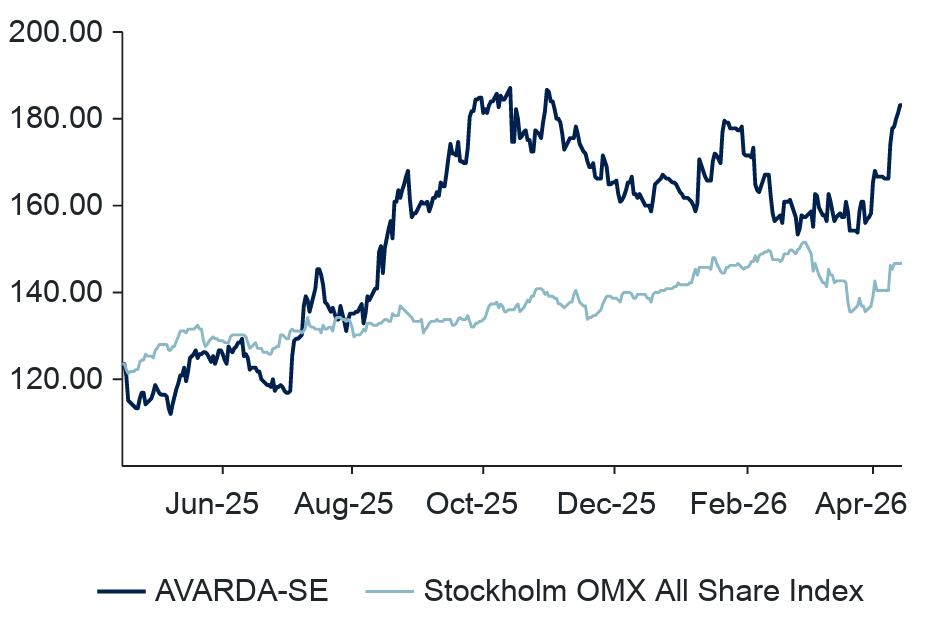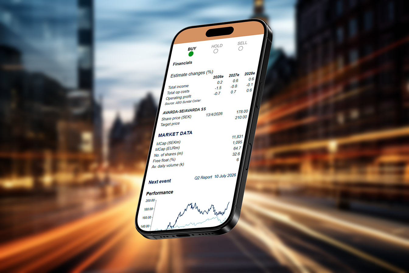 Sedan ABG Private Banking lyfte Avarda-caset i juli 2025 har aktien stigit nära 50 procent. Efter en något svagare start på året är aktien nu upp omkring 15 procent, med en tydlig acceleration i samband med Q1-rapporten. Det är inte en slump.